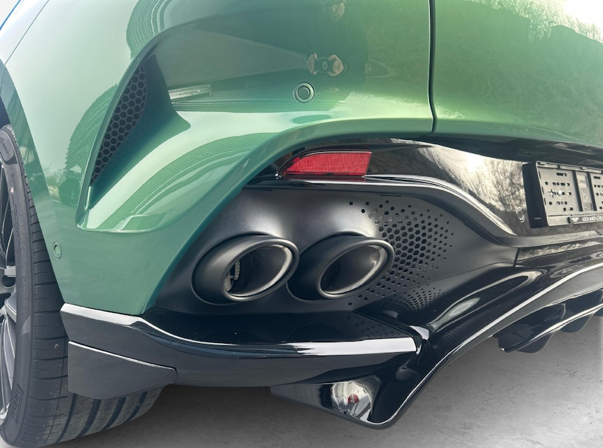 Exterior: Q Special - Iridescent Emerald Interior: Q Eifel Green / Ivory Stitch: Contrast - Ivory Cabin Carpet: Black Headlining: Q Eifel Green Exterior Pack - Gloss Black Upper Exterior Pack - DBX707 Gloss Black Lower Front Grille - Satin Chrome 22 Inch Sport – Gloss Black Diamond Turned Wheels - Space Saver Spare Wheel Brake Calipers - Black Painted Tail lights - Red Clear Glass Exterior Badging - Aston Martin Polished Chrome Script and Enamel Wing Badging Interior - Inspire Sport - Duotone Leather - Q Semi Aniline Leather Palette Trim Inlay - Piano Black Wood Veneer Interior Jewellery Pack - Satin Dark Chrome Cabin Carpet - Primary Floor Mats - Base Seating - Sports Plus Seats Seating - 16 Way Electric Front Seats With Memory Seating - Heated Seats Seating - Ventilated - Front and Rear Stitch - Contrast Heated Steering Wheel Seatbelts - Black Convenience - Park Assist Infotainment - Aston Martin Premium Audio Aston Martin Designer Key Set Convenience - Keyless Entry Power Tailgate - With Gesture Control Convenience - Inductive Mobile Phone Charger Convenience - Blind Spot Monitoring Convenience - 360 Camera