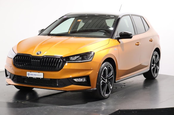 (4) Leasingbeispiel: SKODA Fabia, Listenpreis CHF 25900.0, Leasingrate CHF 287.3, Leasingzins 3.99 %, eff. Leasingzins 4.06 %, Laufzeit 48 Monate, 10000 km/Jahr, Sonderzahlung CHF 5180.00 ( nicht obligatorisch ), Vollkasko oblig.