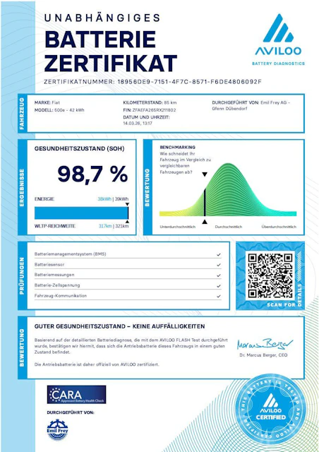 Batterie-Check: Diese Batterie hat einen Gesundheitszustand (SoH) von 98.7%.