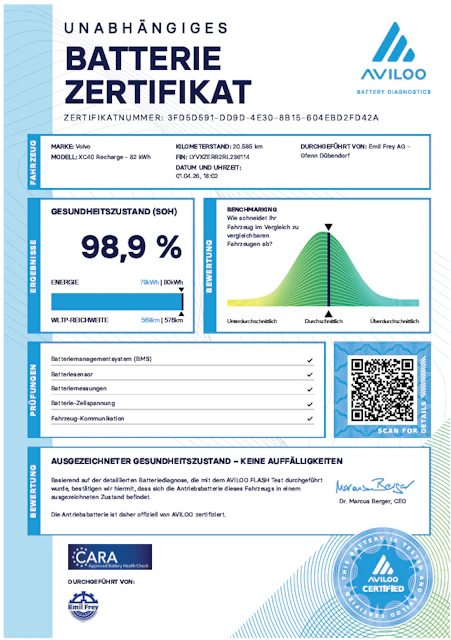 Batterie-Check: Diese Batterie hat einen Gesundheitszustand (SoH) von 98.9%.
