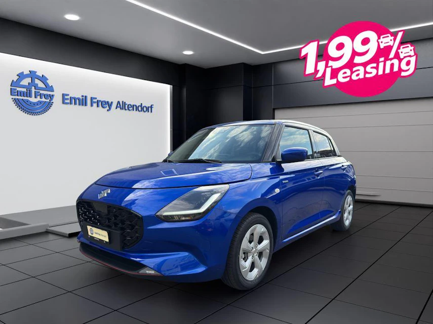 (4) Leasingbeispiel: Suzuki Swift, Listenpreis CHF 23600.0, Leasingrate CHF 184.05, Leasingzins 2.99 %, eff. Leasingzins 3.03 %, Laufzeit 48 Monate, 10000 km/Jahr, Sonderzahlung CHF 5000.00 ( nicht obligatorisch ), Vollkasko oblig.