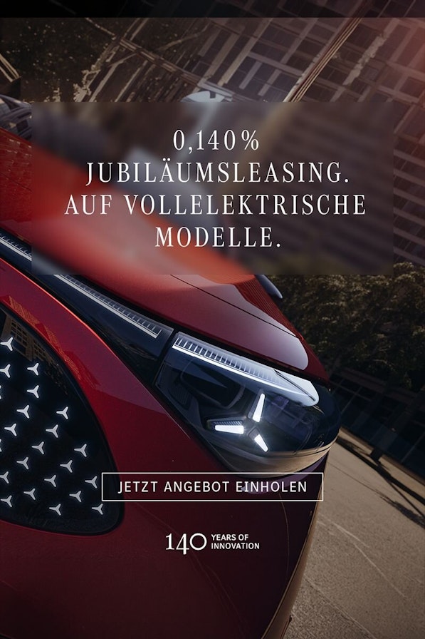Vor 140 Jahren patentierte Carl Benz das erste Automobil. Heute sind unsere Innovationen auch vollelektrisch. Feiern Sie 140 Jahre Fortschritt mit dem 0,140 % Jubiläumsleasing auf fast alle vollelektrischen Mercedes-Benz-Modelle bei einer Integration der Mercedes-Benz Motor Insurance in die monatliche Leasingrate. Am besten besuchen Sie uns bald und überzeugen sich von unserer Modellvielfalt. Wir freuen uns auf Ihren Besuch. Team Emil Frey Wädenswil