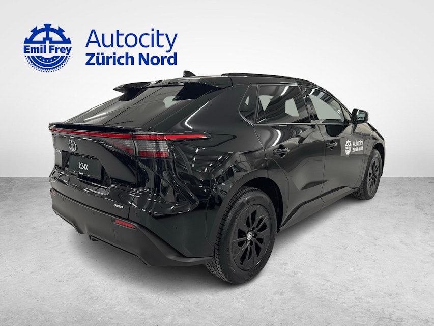 (4) Leasingbeispiel: Toyota bZ4X, Listenpreis CHF 49900.0, Leasingrate CHF 439.95, Leasingzins 0.99 %, eff. Leasingzins 0.99 %, Laufzeit 48 Monate, 10000 km/Jahr, Sonderzahlung CHF 10000.00 ( nicht obligatorisch ), Vollkasko oblig.