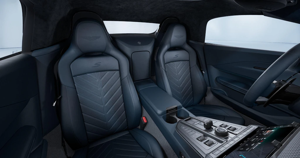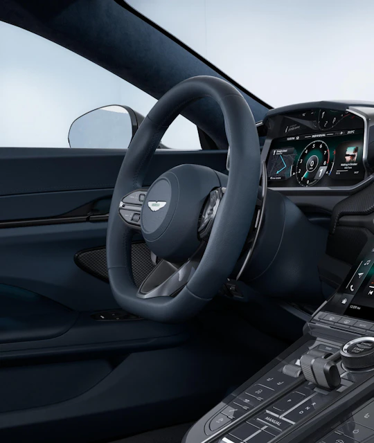 Exterior - Lightning Silver (Signature Metallic) Interior - Dark Night (Inspire Sport Monotone) Stitch - Match Cabin Carpet - Black Headlining - Dark Night Black Pack - Lower Black Pack - Upper Front Grille Vaned – Black Hood Colour – Primary Smoked Rear Lamps Black Wings Badges Presenting Door Handles Brake Disc Type - Iron Brake Calipers - Black Wheels - 21 Inch 5 Spoke Forged Satin Black Sports Plus Seat Ventilated Front Seats Leather Colour - Contemporary Seatbelts - Black Steering Wheel - Sports - Leather Headrest Embroidery - Aston Martin Wings IP Upper Trim inlay - Carbon IP Lower Trim inlay - Carbon Centre Stack Finisher - Gloss Black Dark Chrome Jewellery Pack Stolen Vehicle Tracker Perimeter Camera System Inductive Mobile Phone Charging