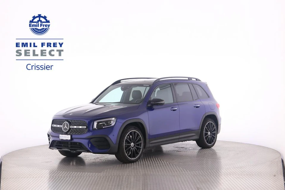 (4) Exemple de leasing : MERCEDES-BENZ GLB, prix catalogue 42900.0 CHF, mensualité leasing 408.8 CHF, taux de leasing 3.99 %, taux de leasing eff. 4.06 %, durée 48 mois, 10000 km/an, paiement exceptionnel 9000.00 CHF ( non obligatoire ).