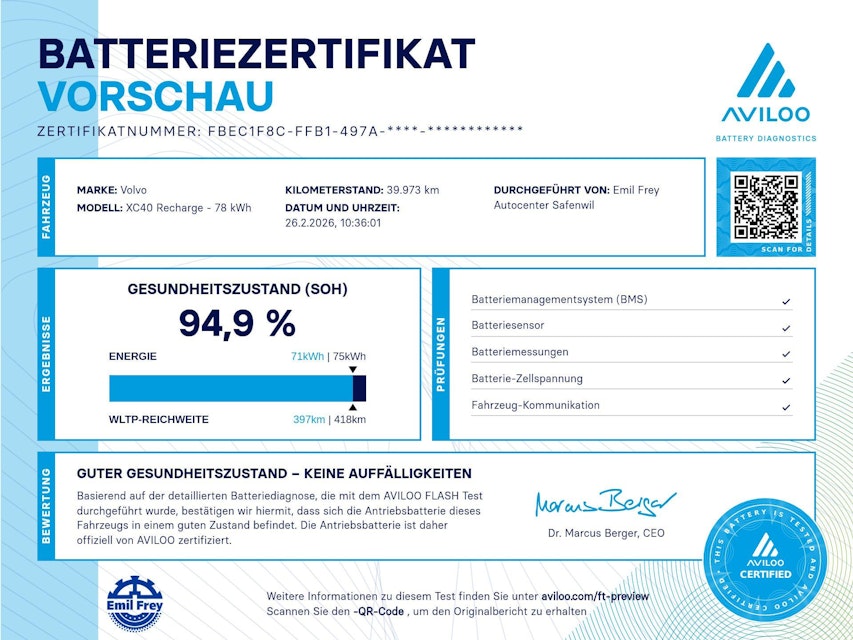 BIENVENUE CHEZ EMIL FREY SA, VOTRE CENTRE AUTOMOBILE À SAFENWIL Vous vous intéressez à ce véhicule et nous en sommes heureux ! Profitez du plus grand choix d’occasions soignées, de véhicules de fonction à l’état neuf, de jeunes véhicules de démonstration et de nombreux véhicules neufs du Plateau. De plus, nous vous proposons notre garantie de mobilité dans toute l’Europe ! Vous pourrez bénéficier de nos prestations de garantie dans chaque garage Emil Frey de Suisse. Notre équipe de vente compétente sera ravie de vous accueillir et de vous proposer notre service fait sur mesure. N’hésitez pas à nous appeler! Nous parlons français, allemand, italien et anglais. Le montant forfaitaire de livraison de de CHF 520.- à CHF 720.- est facturé comprenant un plein de carburant, le contrôle du véhicule, le nettoyage, la vignette, les instructions concernant le véhicule ainsi que les formalités administratives pour l'immatriculation du véhicule.