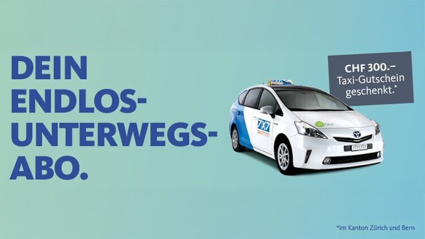 Wenn du jetzt im Kanton Zürich oder Kanton Bern von den vielen Vorteilen der Emil Frey move Abo-Mobilität profitierst, kommt noch ein weiterer dazu. Schliesse jetzt ein Emil Frey move Abo deiner Wahl ab und wir schenken dir einen Taxi-Gutschein von 7x7 im Wert von CHF 300.–. Finde jetzt genau das Auto, das du brauchst, sichere dir deinen 7x7 Taxi-Gutschein und sei endlos unterwegs.